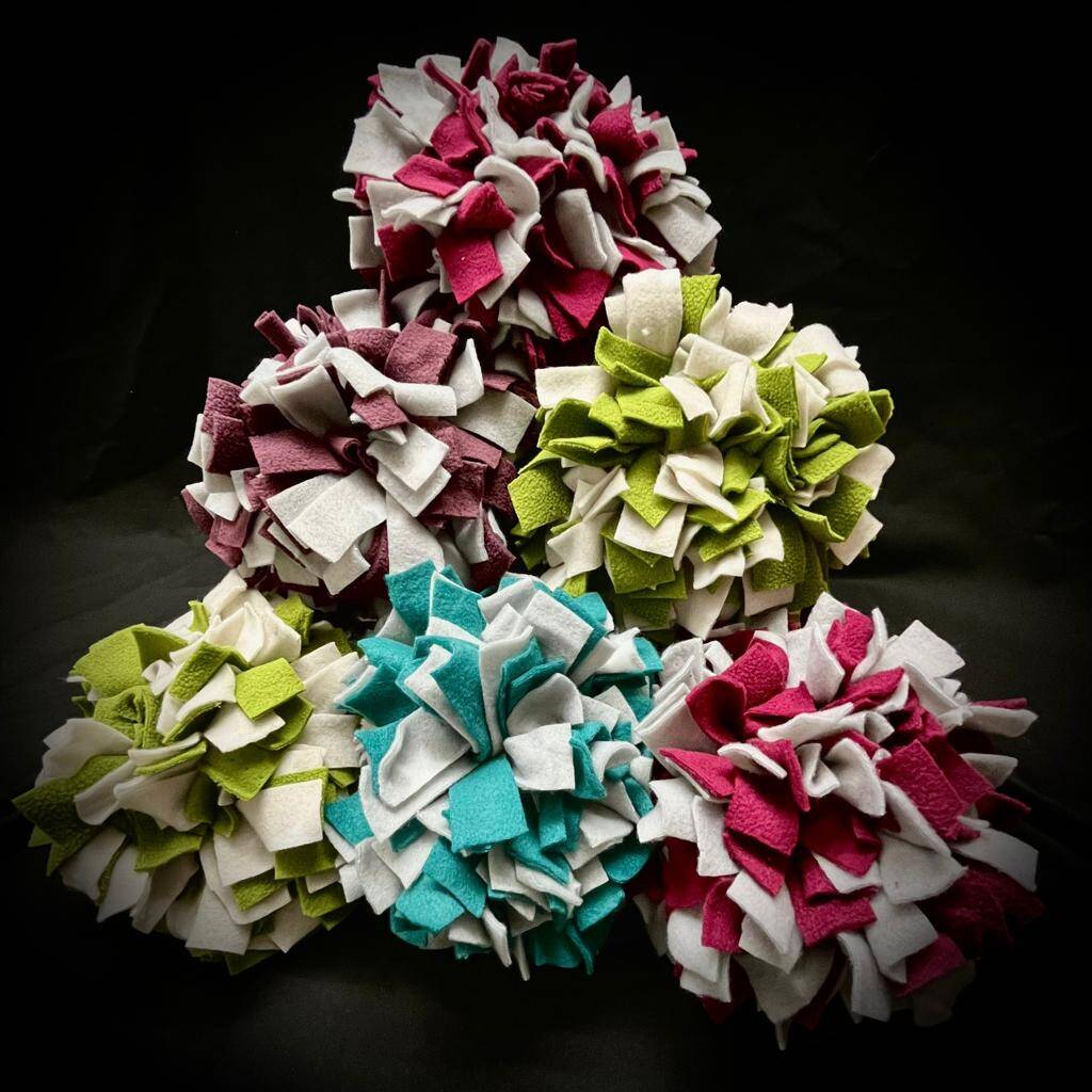 Zwischen den einzelnen Streifen des Schnüffelballes kannst du deinem Hund die Leckerli verstecken. Das Suchen beruhigt deinen Liebling, erfordert seine volle Konzentration und ist für die geistige Auslastung sehr gut.
