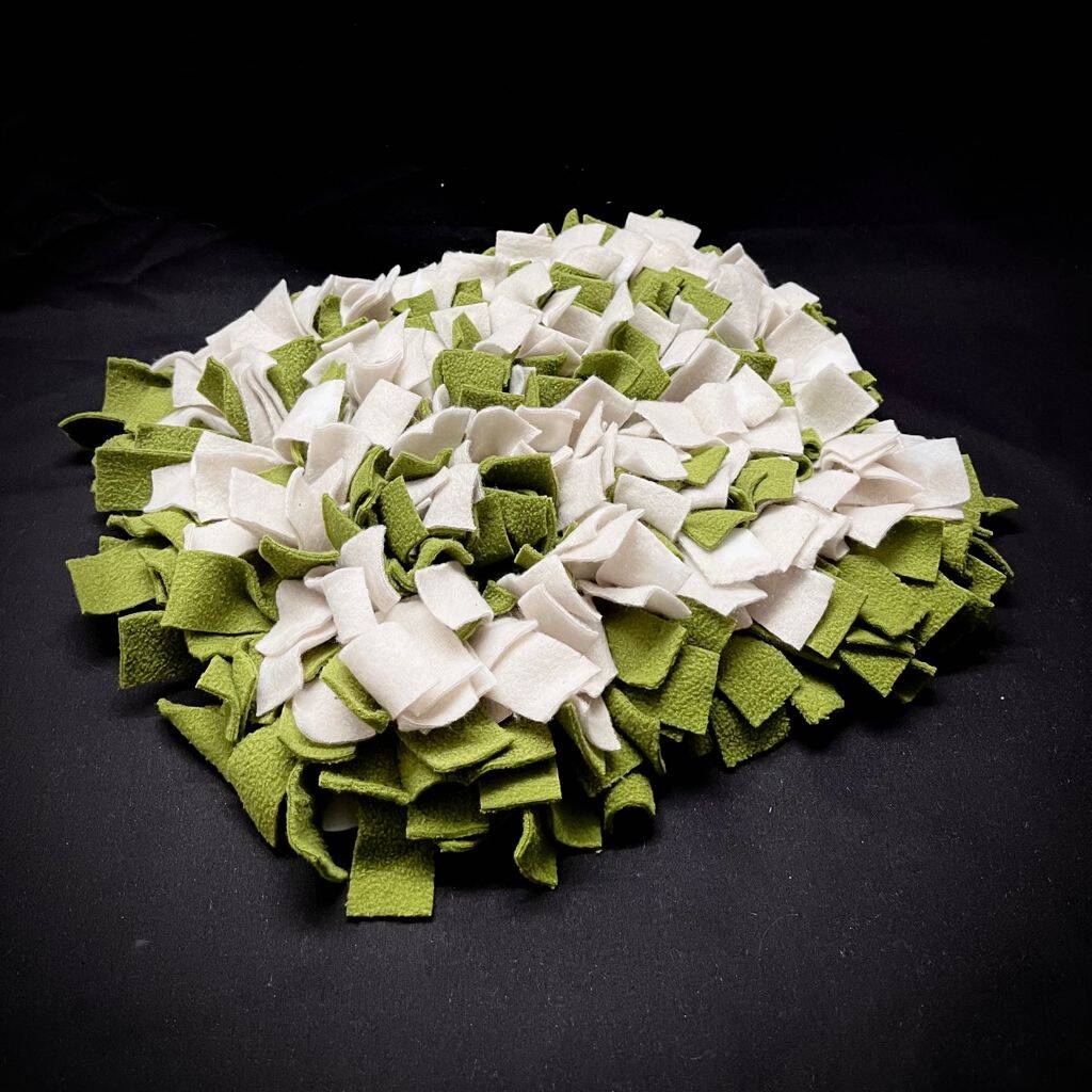 Die Alternative zum Schnüffelball ist der Schnüffelteppich. Wenn er öfters gebraucht wird, riecht er mehr nach den feinen Leckerli, was das Suchen für deinen Hund schwieriger macht.